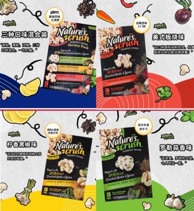 在NaturesCrush問世之前,沒有一家制造商敢于在微波爆米花袋中使用真正的純植物香草料。NaturesCrush通過高端的技術(shù),做到了在微波爆米花袋中使用純植物,真正的香草料,而非調(diào)味粉。這一創(chuàng)舉,使微波爆米花得到了革命性的提升,口味豐富多彩,真正好滋味。一經(jīng)問世,NaturesCrush以咸香的風(fēng)味,非轉(zhuǎn)基因成分,無糖的配方成為風(fēng)靡歐美的微波爆米花品牌,爆米花的多種口味、無麩質(zhì)、純素食、0糖都成為人們喜愛它的理由。