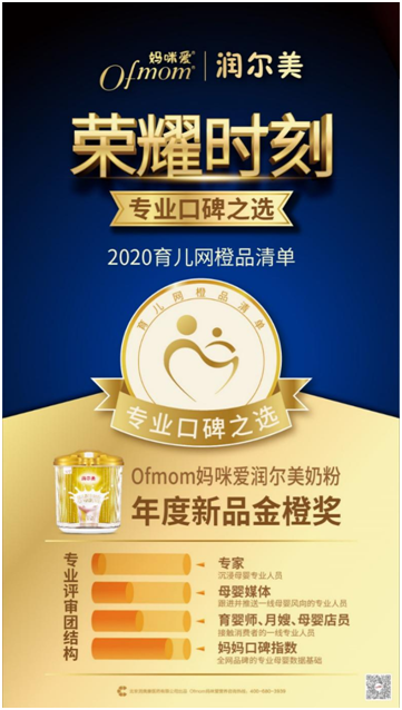 潤(rùn)爾美系列嬰幼兒配方奶粉是Ofmom媽咪愛在母乳營(yíng)養(yǎng)和嬰幼兒腸道健康領(lǐng)域的又一研究成果,產(chǎn)品同樣以制藥標(biāo)準(zhǔn)研發(fā)生產(chǎn),是一款根據(jù)寶寶的腸道健康、大腦發(fā)育以及免疫力等研發(fā)的全面營(yíng)養(yǎng)配方奶粉。憑借好品牌、好品質(zhì)、好配方、專利罐體四大核心優(yōu)勢(shì)的脫穎而出,榮獲“年度新品金橙獎(jiǎng)”。