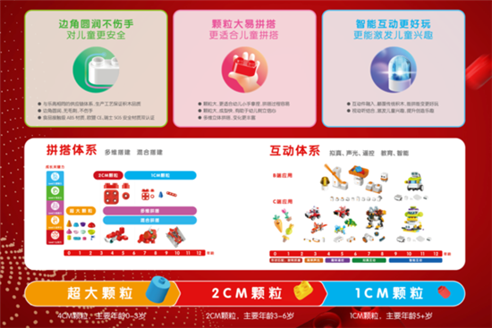 本次推出的11款小豬佩奇系列新品,以3歲為界,針對3歲以下嬰童的產(chǎn)品使用超大顆粒積木,在遵循“適齡性”的基礎(chǔ)上,加入早教理念,多維度地豐富了產(chǎn)品的內(nèi)容和玩法,增加了產(chǎn)品的早教益智屬性;針對3歲以上兒童的產(chǎn)品則使用大顆粒積木,精選動畫片中的經(jīng)典場景,讓小朋友在玩樂的過程中,培養(yǎng)良好的生活習(xí)慣,激發(fā)動手力及創(chuàng)造力。